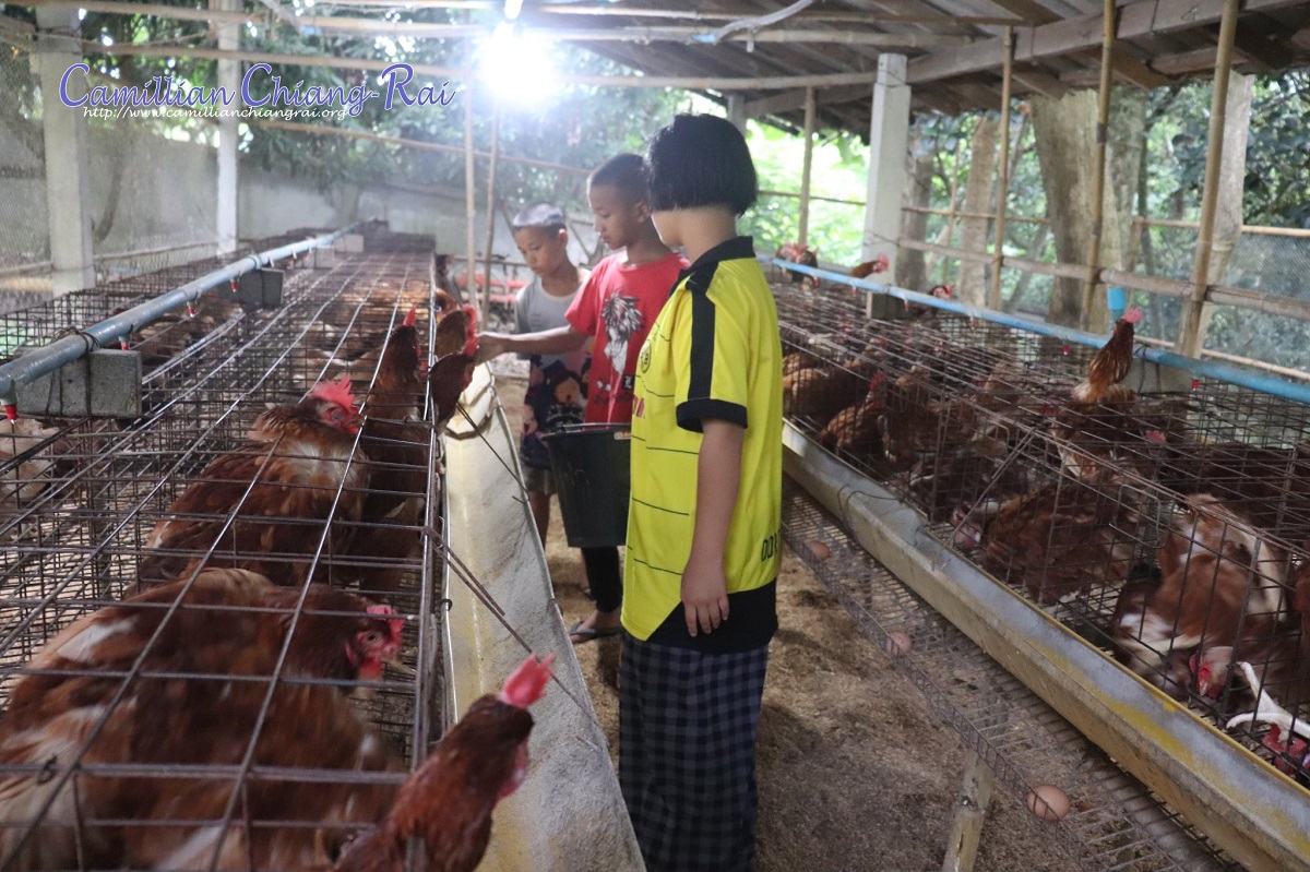 | รวมภาพกิจกรรมของเด็ก ๆ ในสถานสงเคราะห์คามิลเลียน เชียงราย ช่วงวันหยุดสุดสัปดาห์ ทางสถานสงเคราะห์ได้จัดให้เด็ก ๆ มีหน้าที่รับผิดชอบ ดูแล ทำงานต่าง ๆ เพื่อเป็นการฝึกทักษะ ความรู้ ความรับผิดชอบ อันจะเป็นประโยชน์กับตัวเด็กต่อไปในอนาคต กิจกรรมคือการดูแลให้อาหารไก่ เก็บไข่ รุ่นพี่ตัดผมให้น้อง ๆ และการนำสิ่งที่เหลือใช้มาแปรรูปเพื่อใช้ประโยชน์อย่างอื่นต่อไปได้ | ||